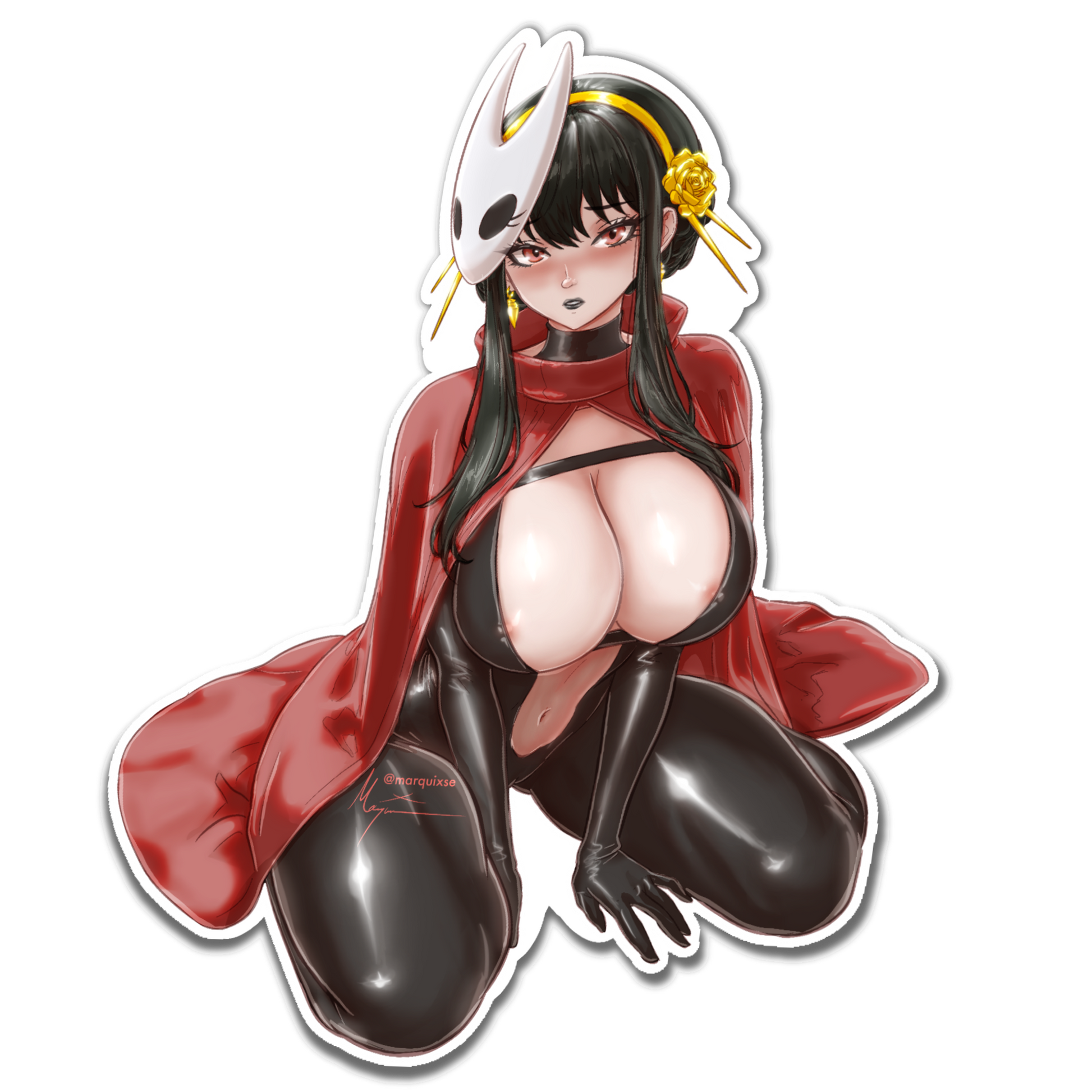 A Spy x Family and Hollow Knight: Silksong Trend. "Yor Hornet" sticker is made of durable, weatherproof vinyl and measures 5"(inches) TALL.